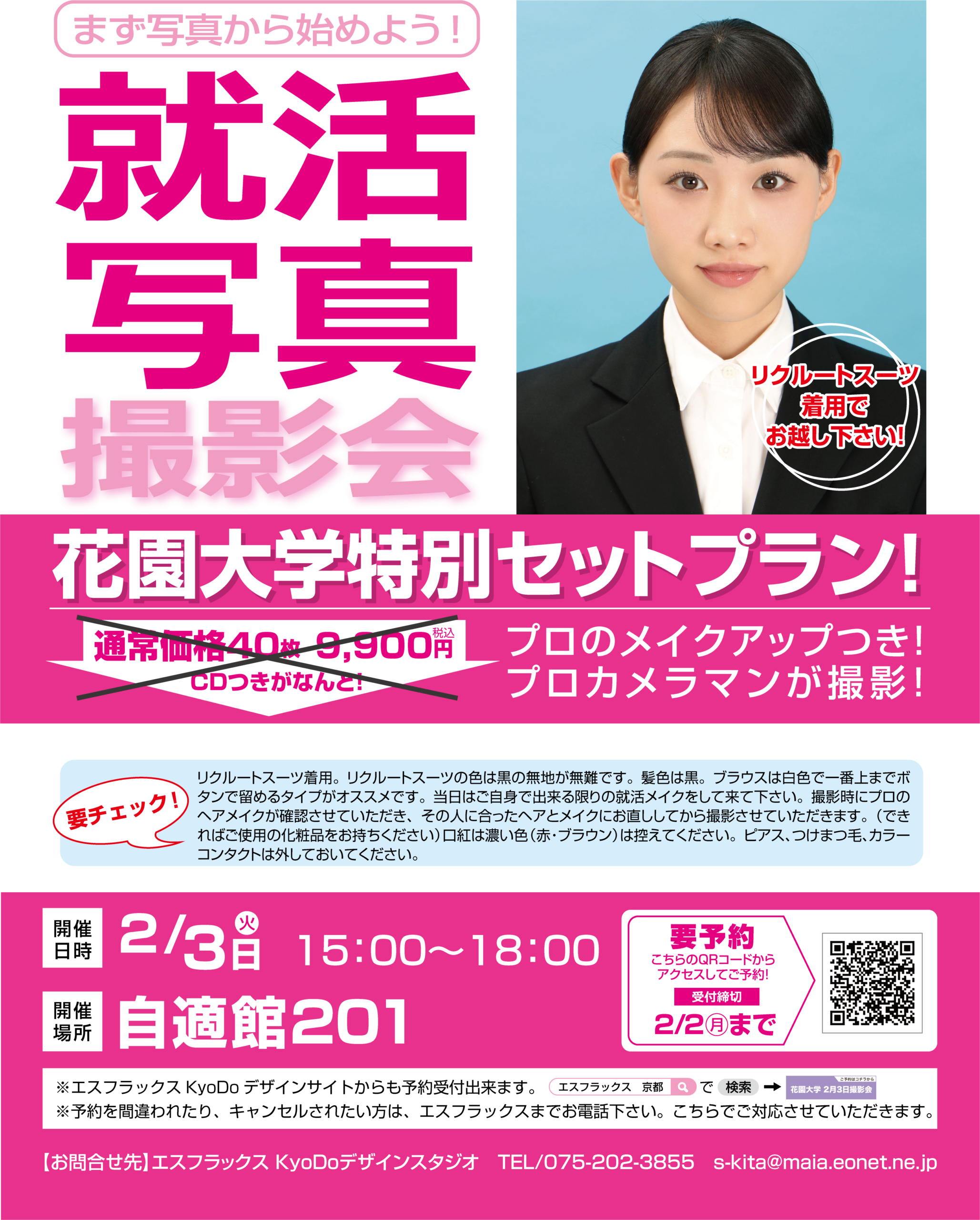 2月3日 花園大学にて撮影会を開催しました 2026年4月1日 by エスフラックス KyoDoデザインスタジオ. 2月3日に花園大学にて撮影会を開催しました。 お越しいただきまして誠にありがとうございました! 前の記事 次の記事